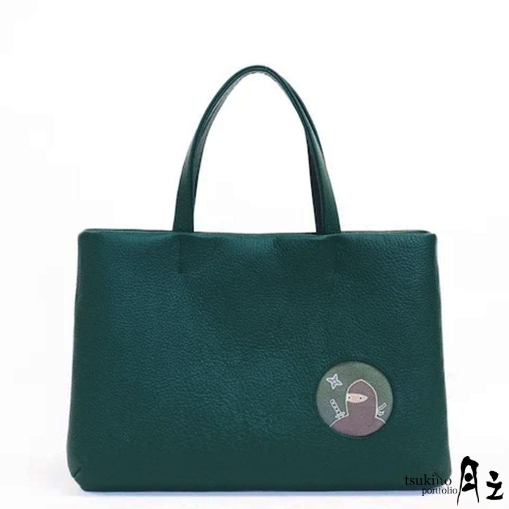 正面のすみっこに友禅作家・中野スズミさんによる、愛らしい染めものをレイアウト。使うたびチラリと顔を出すキャラクターに、ココロなごんでしまう癒やし系トートです。