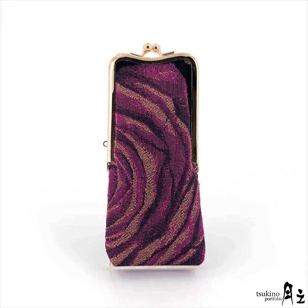 がま口を使ったユニークなメガネケースです。メガネを縦に収納します。セールスポイントは使いやすい開きの大きな口金とメガネを包み込むふっくら立体縫製。カバンやポケットにしまう時も角張らず、小さなスペースに収められます。