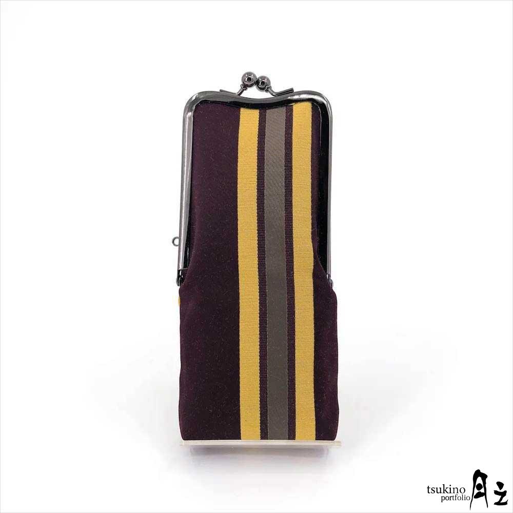 がま口を使ったユニークなメガネケースです。メガネを縦に収納します。セールスポイントは使いやすい開きの大きな口金とメガネを包み込むふっくら立体縫製。カバンやポケットにしまう時も角張らず、小さなスペースに収められます。
